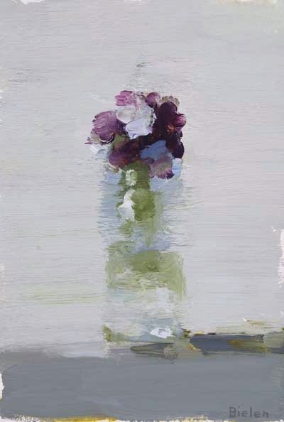 Stanley Bielen was born in Rzeszow, studied painting at the Pennsylvania Academy of Fine Arts and graduated in 1980. During his years at the Academy, he developed a strong tie to the realist tradition of the Philadelphia School. Originally from Poland, Bielen honors the European heritage of still life painting. In his intimate oils, he places high color blossoms and fruit against velvety lush backgrounds. The intimacy with his subject matter begins in the garden where he grows the blossoms that he arranges in simple groupings and rich brushstrokes. Exhibiting regionally and nationally, Bielen’s work also appears in the collections of the Hirshorn Museum in Washington, DC and at the Pennsylvania Academy of Fine Arts in Philadelphia.