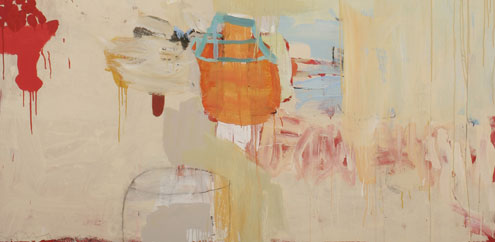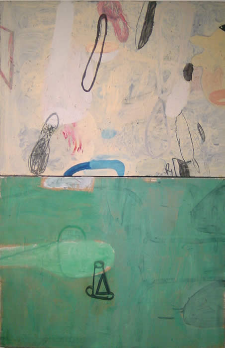 Born in New York City, the son of a Czech architect and Viennese writer, Gary Komarin has been called a “painter’s painter, with a deep connection to the tradition of Modern painting. He is indebted to the New York School, especially his mentor Philip Guston with whom he studied at Boston University. Komarin prefers non-art industrial canvas tarps and drop cloths as opposed to traditional painting media and materials. He builds layered surfaces with latex house paint mixed with spackle and water. The house paint offers hybrid colors that seem slightly ‘off’ and the spackle creates a beautiful matte surface. The mergence of his drawing and painting often break the picture plane with his rich and elegantly composed color fields. Komarin's work reflects the rich history of the abstract expressionist painters as well as the early New Mexico and Berkely paintings of Richard Diebenkorn. Komarin has exhibited extensively throughout the United States, Europe and Asia. He now lives in the wooded Connecticut hills near New York, where he keeps his house and studio.