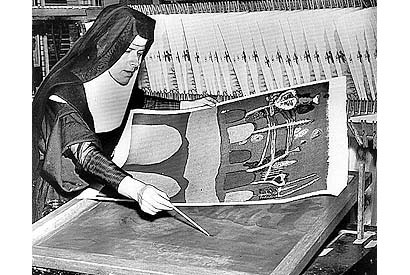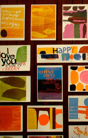 By then Corita was the chairman of the famous Immaculate Heart College Art Department. Buckminster Fuller described his visit to the department as "among the most fundamentally inspiring experiences of my life." Other influential friends of hers included Charles Eames, Ben Shahn, Harvey Cox and the Berrigan brothers. August was Corita’s time for her own art making. During the three weeks between semesters, she and her students would work round the clock printing new serigraph designs by the hundreds.