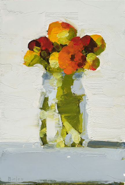 Stanley Bielen was born in Rzeszow, studied painting at the Pennsylvania Academy of Fine Arts and graduated in 1980. During his years at the Academy, he developed a strong tie to the realist tradition of the Philadelphia School. Originally from Poland, Bielen honors the European heritage of still life painting. In his intimate oils, he places high color blossoms and fruit against velvety lush backgrounds. The intimacy with his subject matter begins in the garden where he grows the blossoms that he arranges in simple groupings and rich brushstrokes. Exhibiting regionally and nationally, Bielen’s work also appears in the collections of the Hirshorn Museum in Washington, DC and at the Pennsylvania Academy of Fine Arts in Philadelphia.