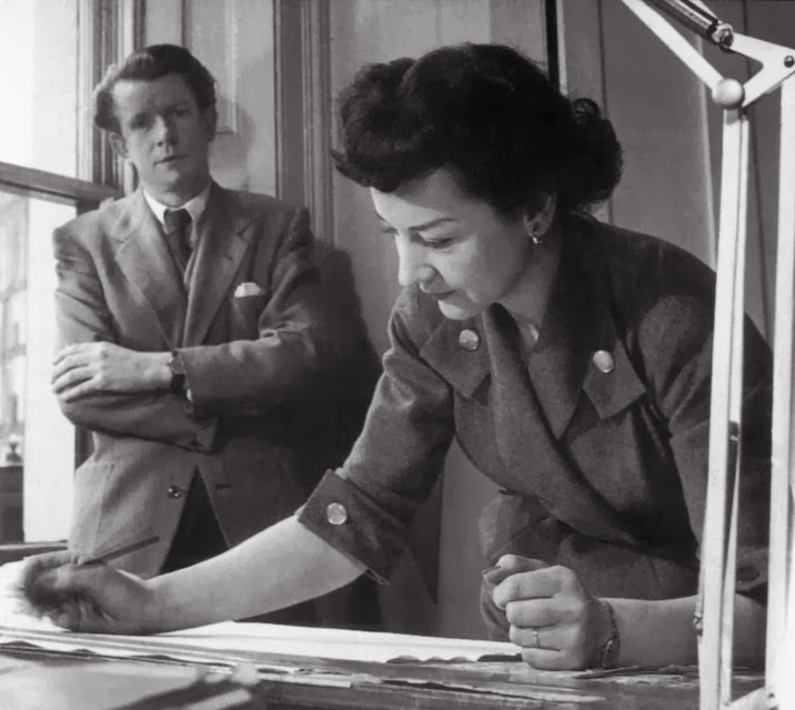 Désirée Lucienne Day was a British textile designer. Born in Coulsdon, Surrey, England, Day was daughter of an English mother and a Belgian father who worked as an insurance broker. She attended convent school in Worthing, and at 17 enrolled in the Croydon School of Art, where she discovered a love of printed textiles. Later she attended the Royal College of Art, where she was a top student. During her time at Royal College of Art she met her future Husband, modern furniture designer [Robin Day] they married in 1942 and were together their entire lives.